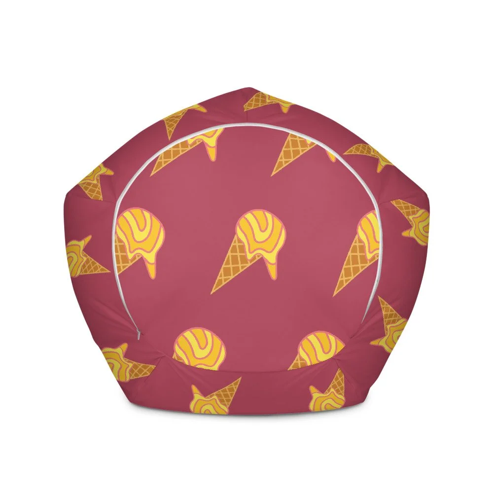 Jazz up your favorite room with a comfy and colorful bean bag! The deep tone of the purple background makes the light orange colored ice cream stand out and scream fun in the sun! Note that this cover has no filling, but the bottom zipper makes it easy to fill with a filling of your own choice.